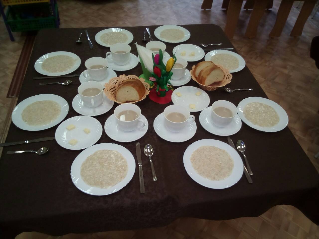 3. На центр стола ставится хлебница с хлебом.